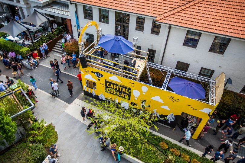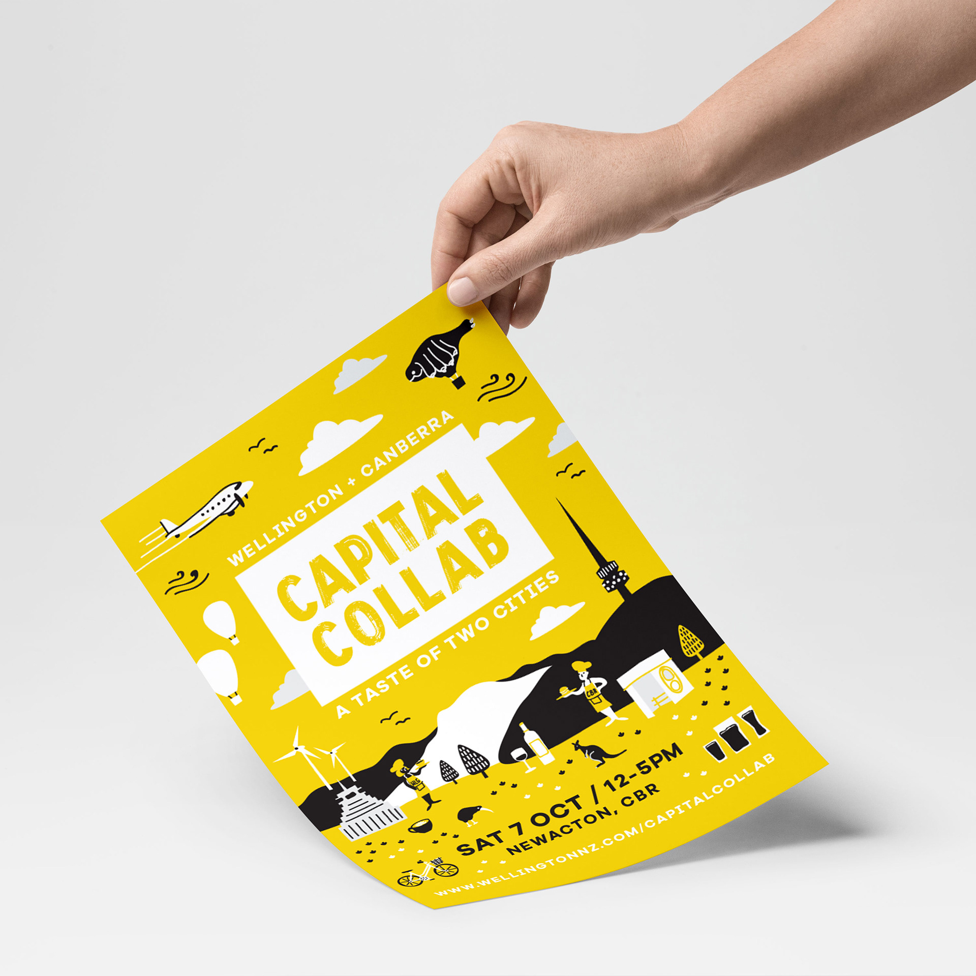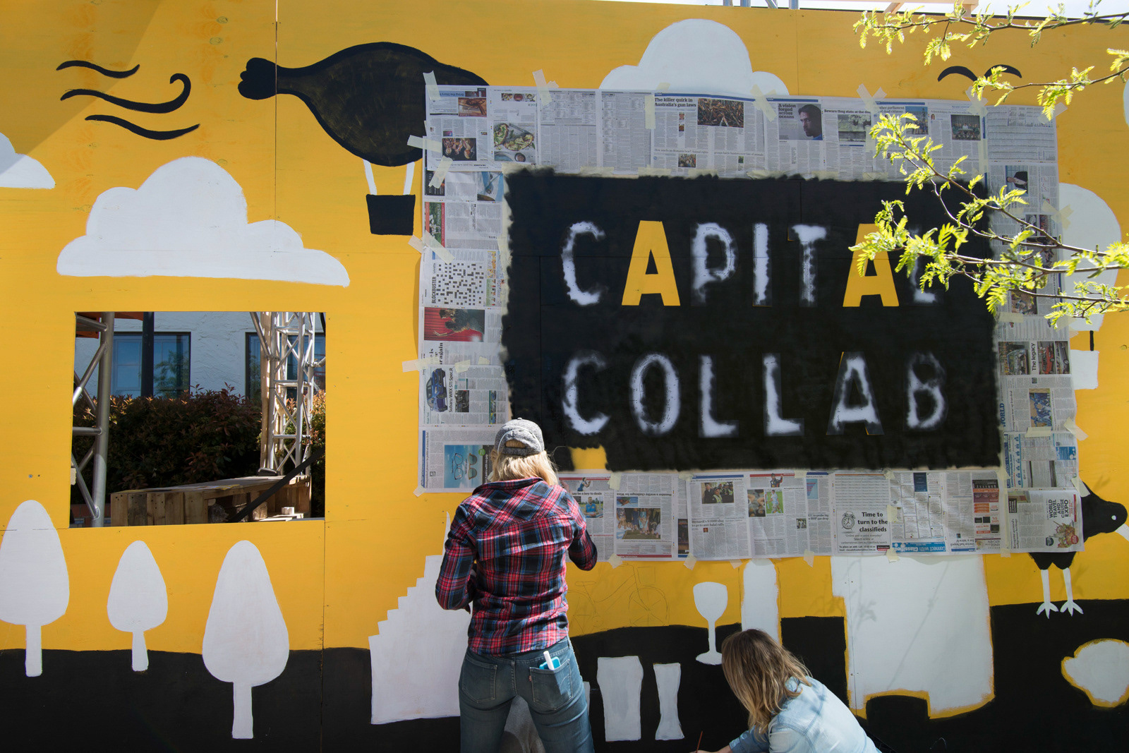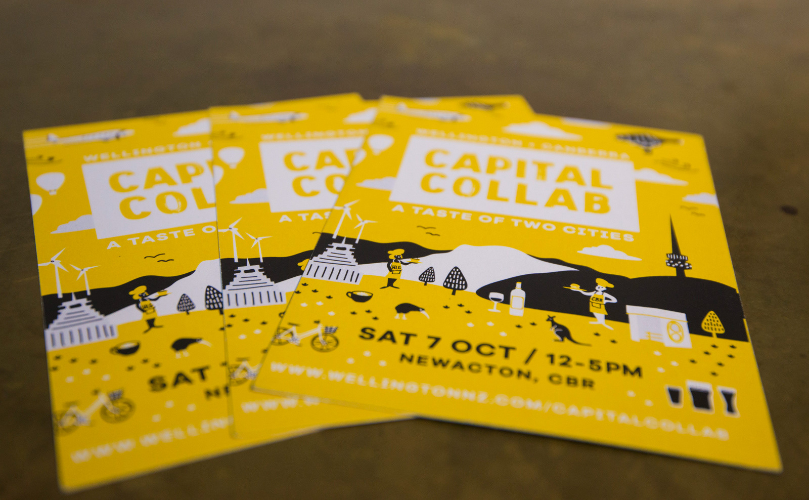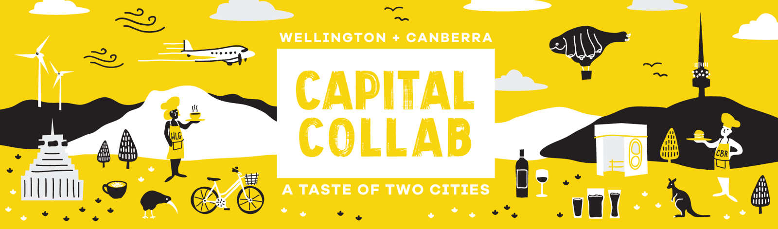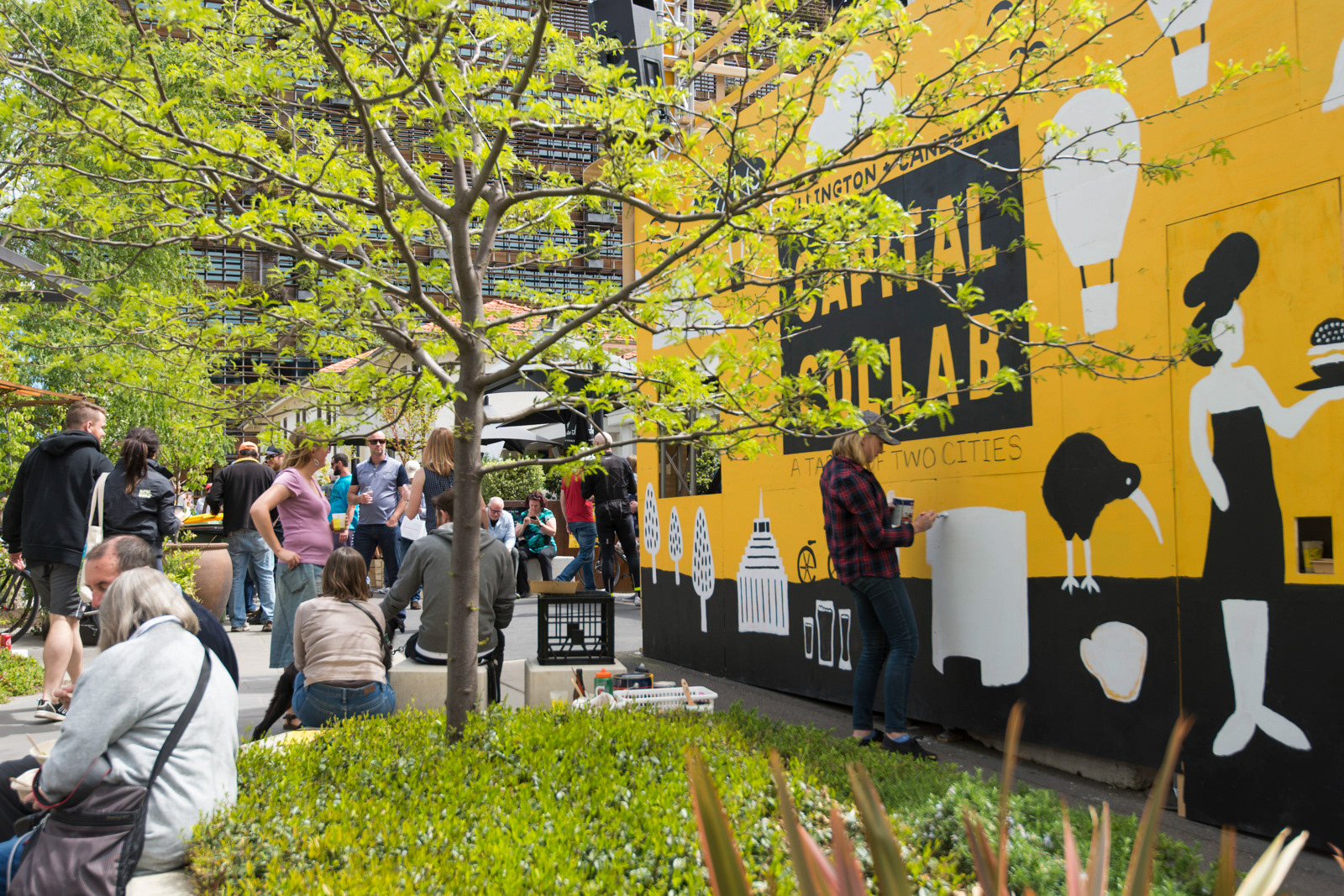 Illustration, graphic design, stage design and mural painting for Capital Collab - a festival of cultural fusion between Wellington and Canberra in NewActon, Canberra.